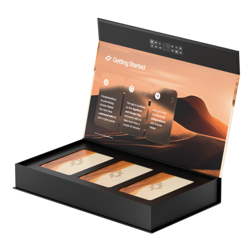 В комплекте три карты, что позволяет иметь резервный доступ или управлять тремя кошельками одновременно.